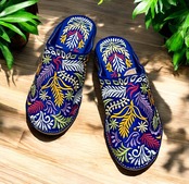 カラフルなリーフの刺繍がポイントで、足元からエスニックな雰囲気を演出します。