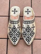 モロッコの伝統的な刺繍が施されたサンダル。