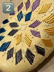 手作りの素朴でかわいらしい刺繍が施された、カラフルで個性的なデザインが特徴です。