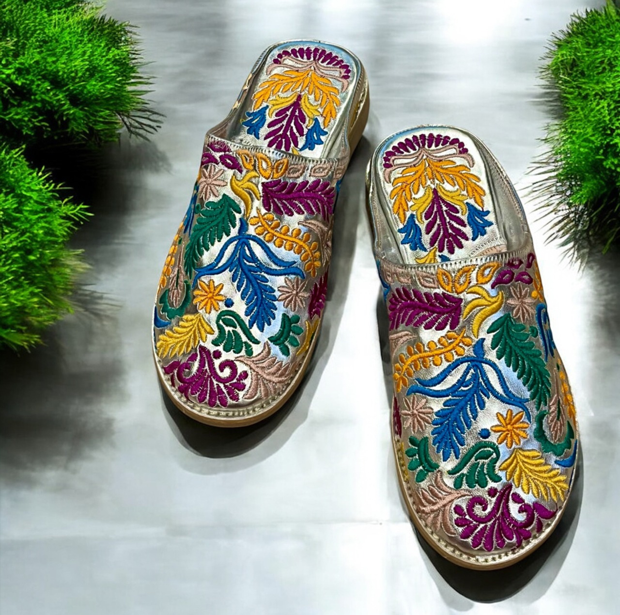 モロッコのサンダル/カラフルリーフ/シルバー/23-23.5cm