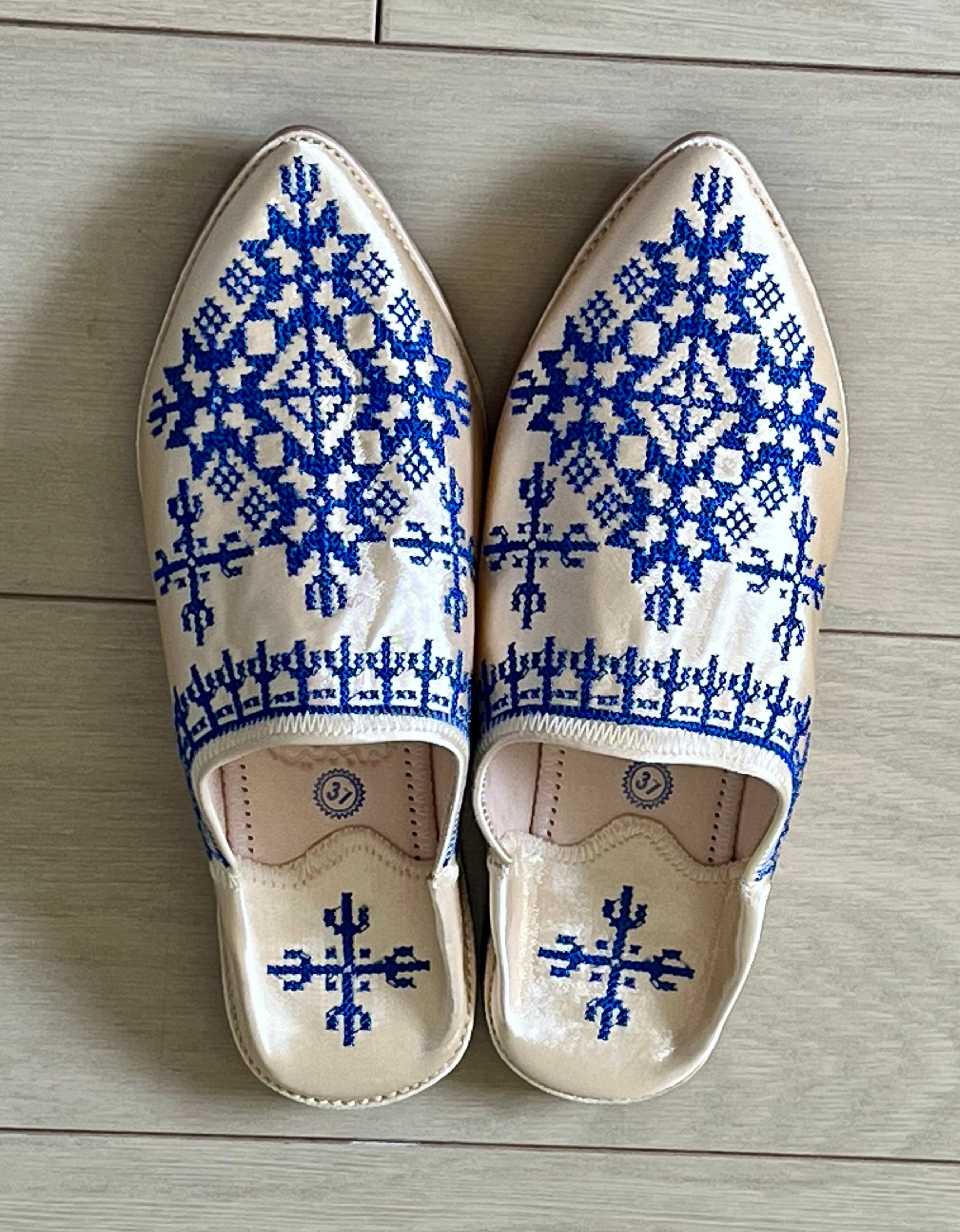 モロッコのサンダル/トラディショナルブローダリー/ブルー/M
