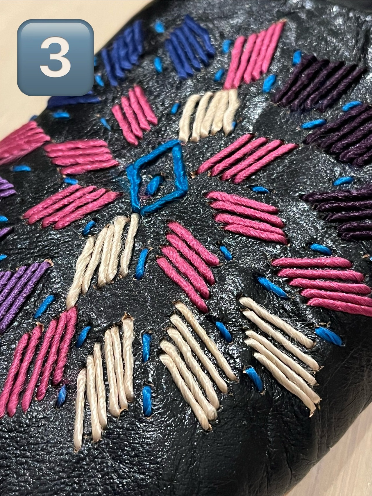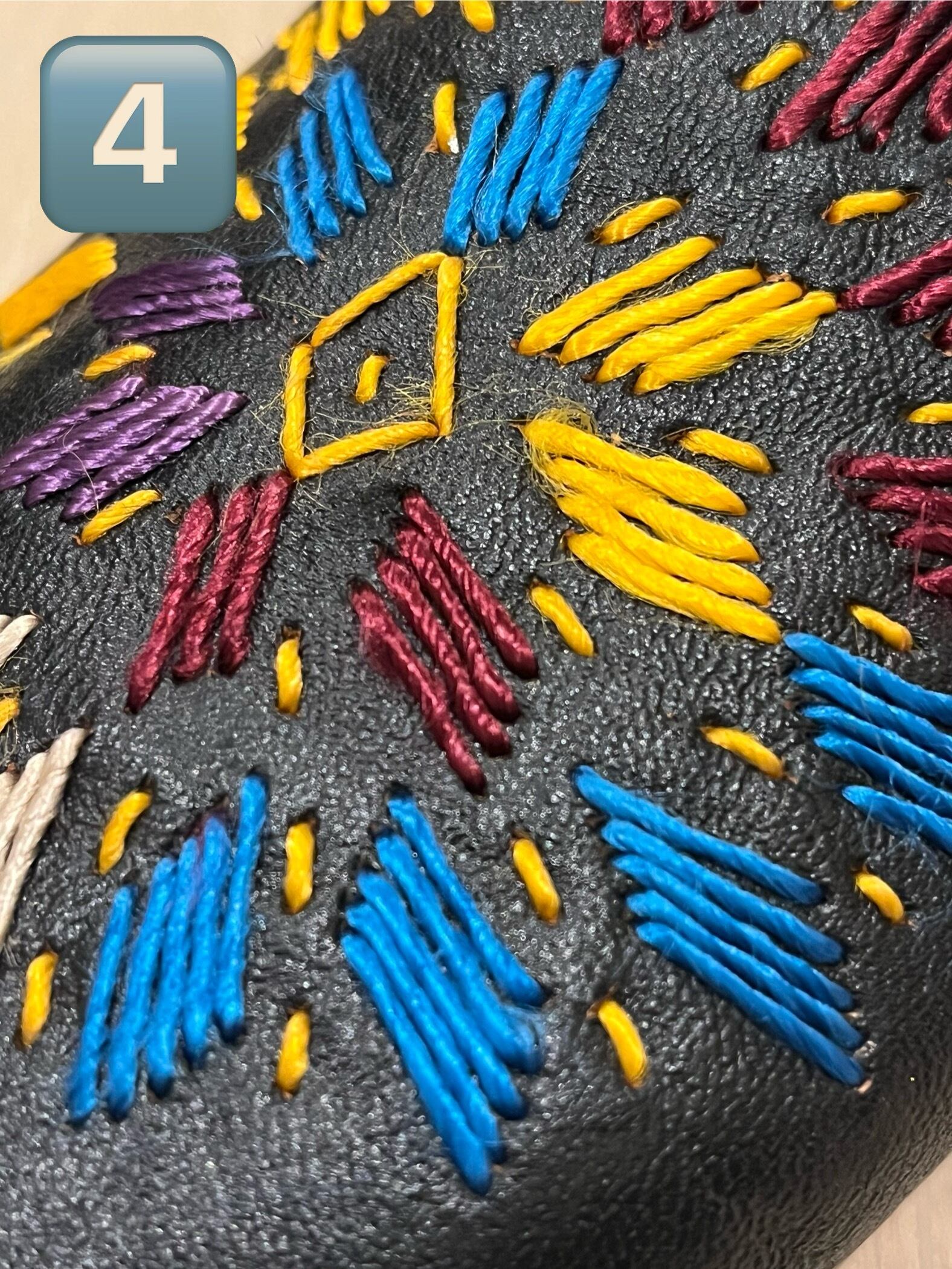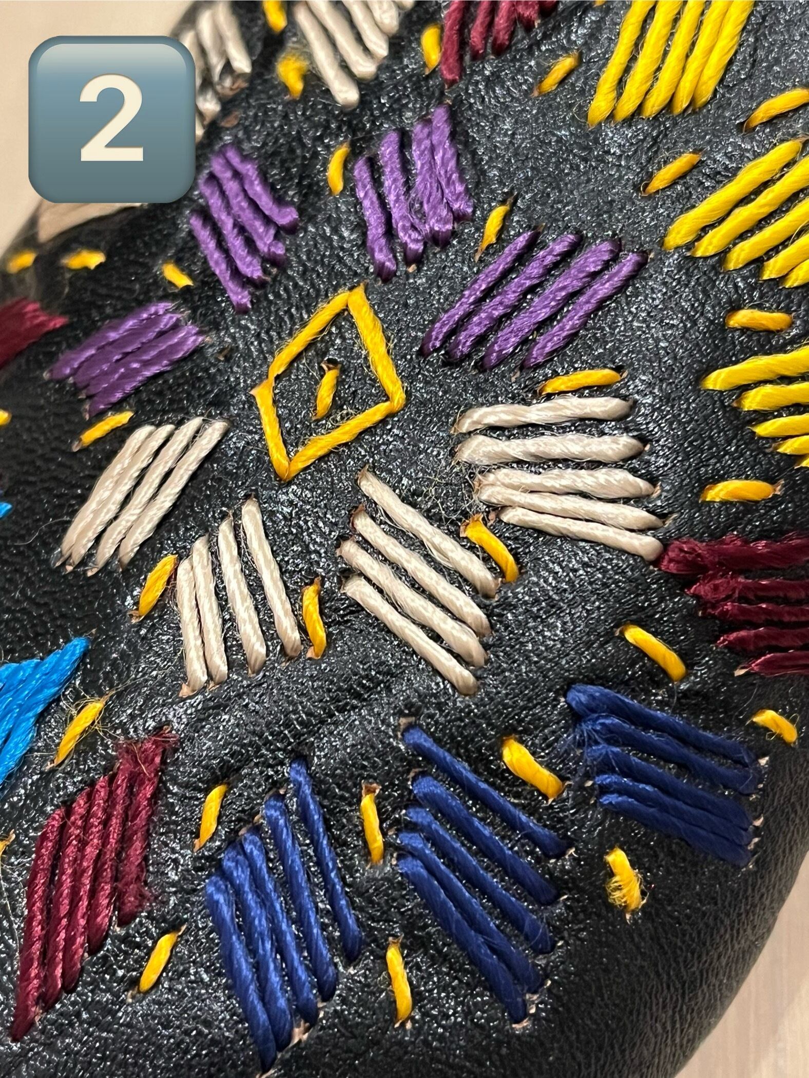 手作りの素朴でかわいらしい刺繍が施された、カラフルで個性的なデザインが特徴です。