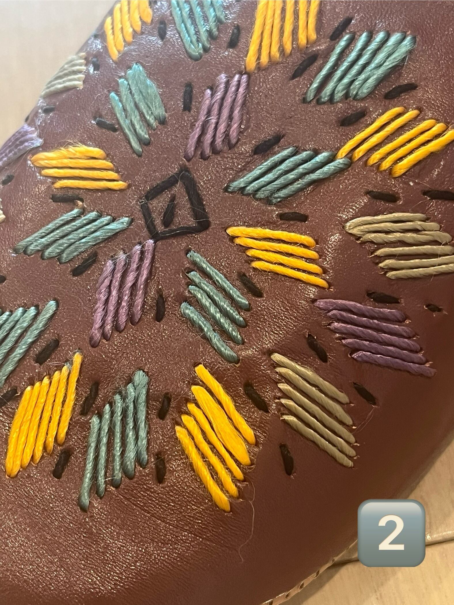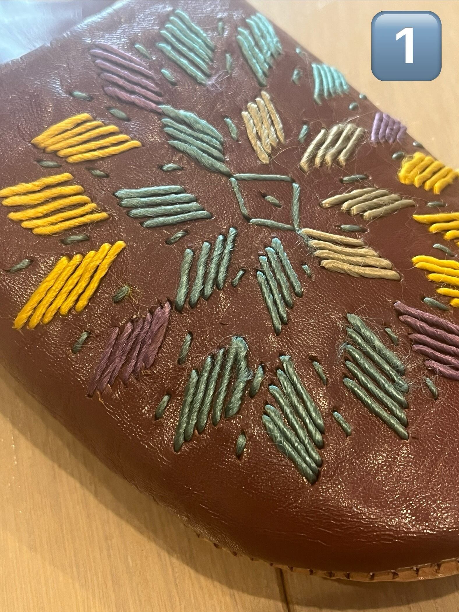 手作りの素朴でかわいらしい刺繍が施された、カラフルで個性的なデザインが特徴です。