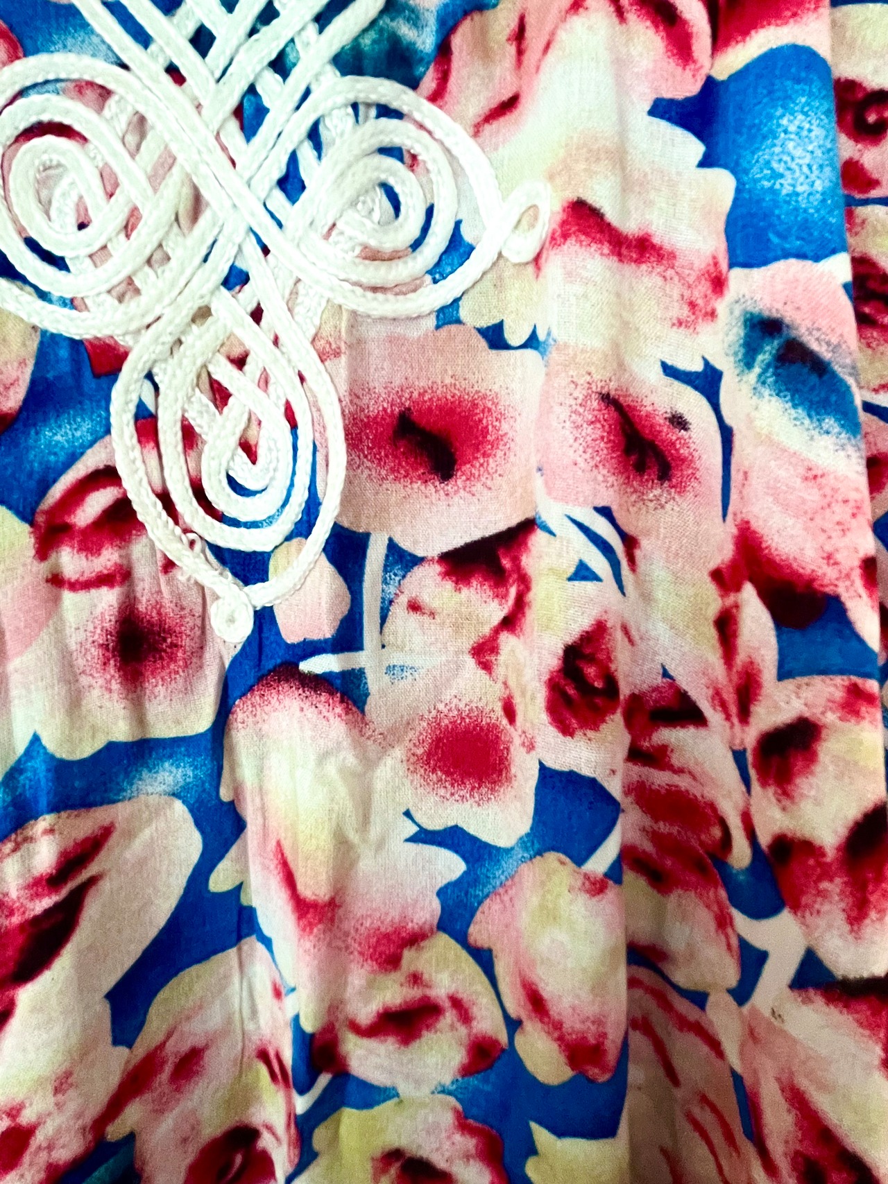 モロッコのガラベーヤ/フラワープリント/ブルーフラワー