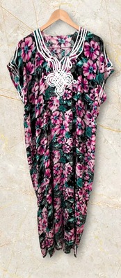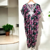 モロッコのガラベーヤ/フラワープリント/マゼンタフラワー